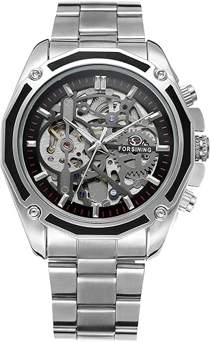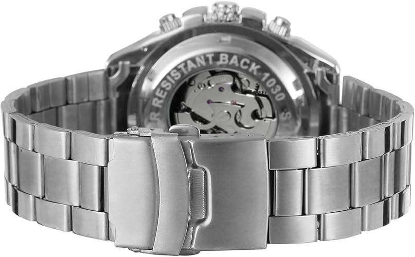 "Un reloj que redefine la elegancia. Con su diseño en acero inoxidable plateado y funcionamiento mecánico, es el complemento perfecto para destacar en cualquier ocasión."